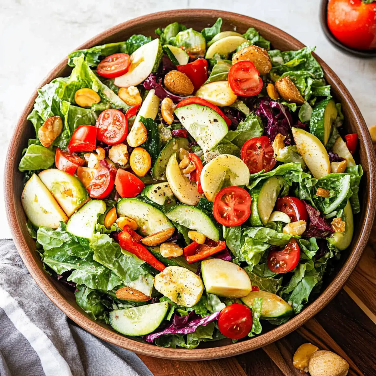 Prep Ahead: Chop vegetables and keep them in separate containers for up to 24 hours. This allows for easy assembly and ensures freshness in your Green Tossed Salad Recipe.