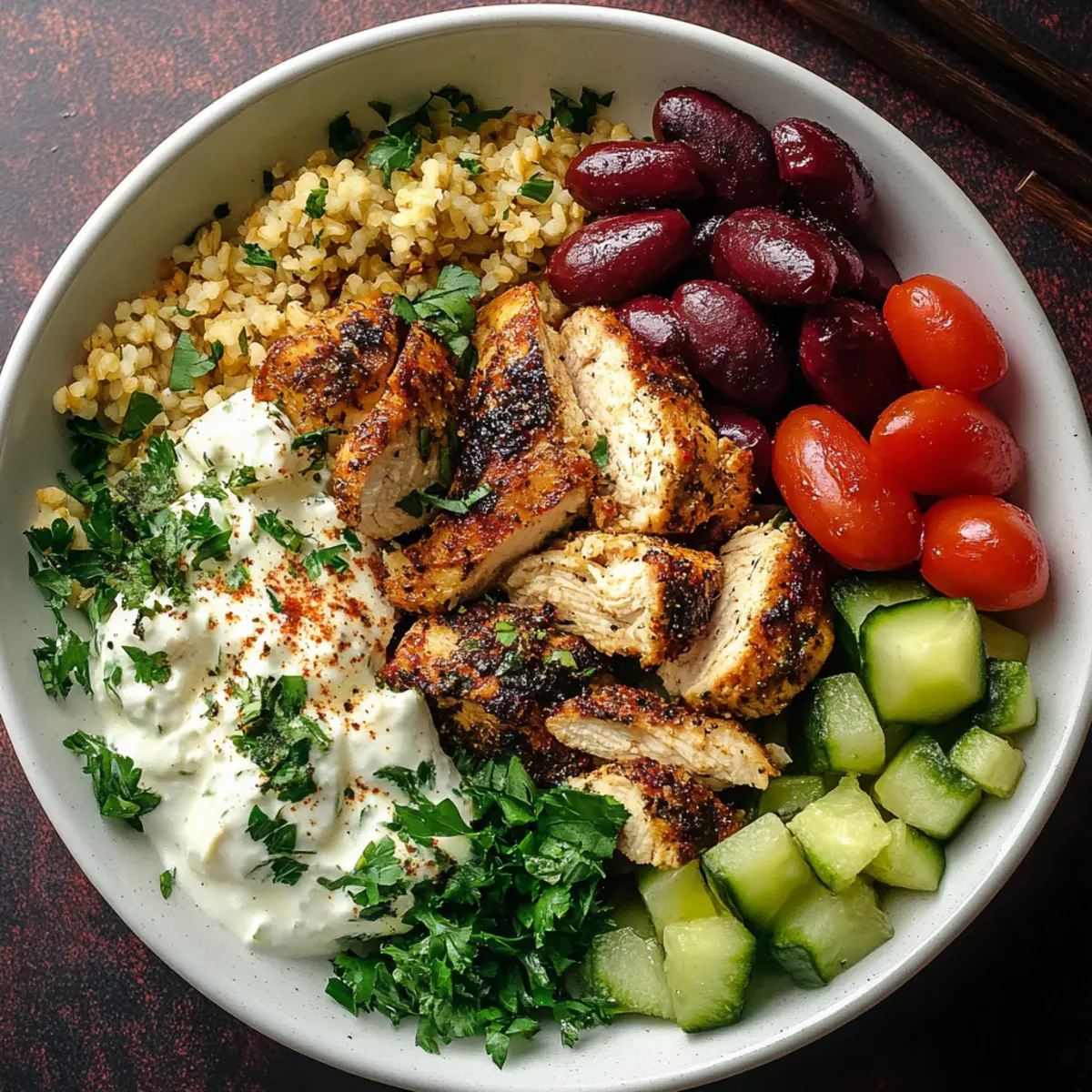 • Customize Wisely: Don’t shy away from swapping ingredients; use seasonal vegetables or different proteins like chickpeas or grilled tofu for a delightful twist that still keeps the spirit of the Mediterranean Chicken Bowl.